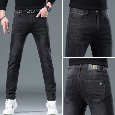 轻奢欧货秋冬季黑灰色牛仔裤男修身小脚潮流弹力休闲长裤子男