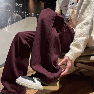 阔腿裤男美式复古高街秋冬季加绒加厚黑色抽绳针织休闲宽松直筒裤