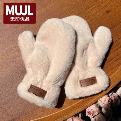冬天加绒仿兔毛手套连指毛绒秋冬季保暖手套可爱甜美女生学生
