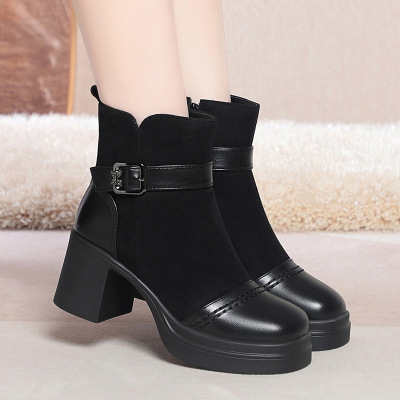 年新款绒面拉链圆头秋冬季女靴