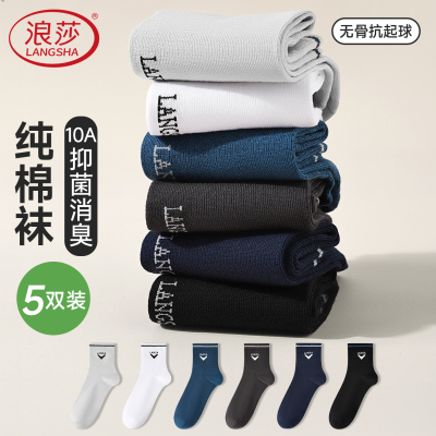 浪莎男袜子男款棉袜商务男士中筒100%正品夏季防臭长筒袜春秋冬季