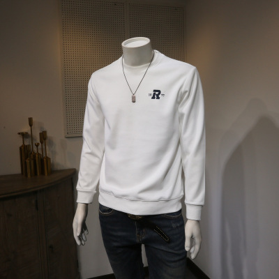 加绒印花卫衣男圆领修身休闲上衣青年套头秋冬季打底衫潮ins欧货