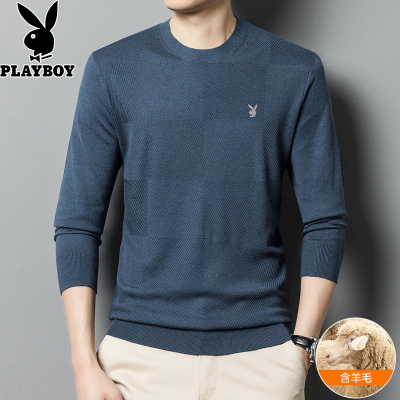 花花公子秋冬季薄款含羊毛针织打底衫男中年爸爸圆领毛衣长袖T恤
