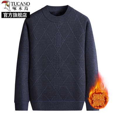 啄木鸟加绒加厚毛衣男士秋冬季中年爸爸装打底衫冬季圆领保暖衣K