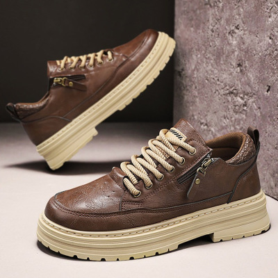 马丁鞋男士低帮英伦复古工装皮鞋休闲秋冬季套脚拉链厚底增高男鞋