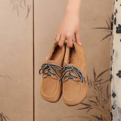 复古磨砂皮勃肯鞋女秋冬季新款加绒气质百搭软底系带豆豆棉鞋