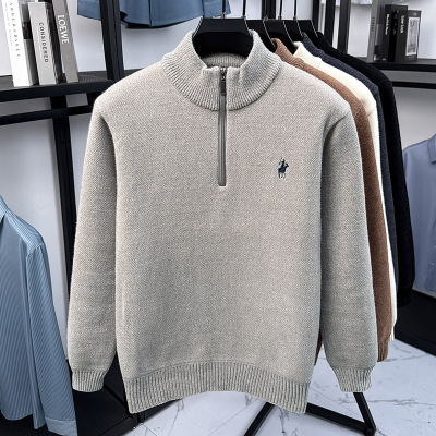 重磅加厚高品质毛衣男秋冬季新款半拉链雪貂绒男士加绒针织衫_5737