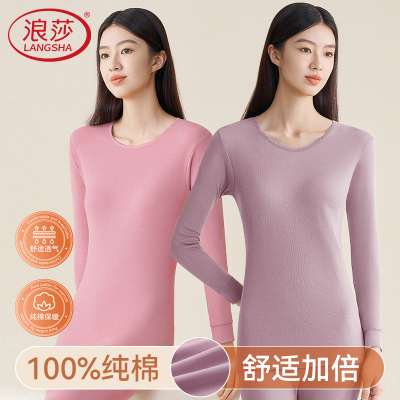 浪莎秋衣秋裤套装女士纯棉保暖内衣薄款棉毛衫女内穿打底春秋冬季