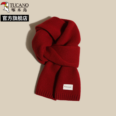 啄木鸟2025新款红色针织围巾女秋冬季百搭氛围感新年礼物围脖学生