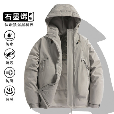 秋冬季石墨烯外套男装冲锋衣情侣潮牌连帽棉服防风防水登山服