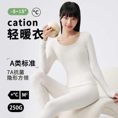 A类方领无痕发热保暖内衣女秋冬季玻尿酸润肤7A秋衣秋裤套装
