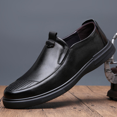 新款秋冬季皮鞋男头层牛皮软面休闲鞋中年软底套脚男鞋子真皮
