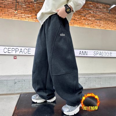 男童加绒裤子新款儿童一体绒运动裤秋冬季中大童卫裤加厚宽松
