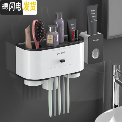 三维工匠磁吸漱口杯套装牙刷杯架置物架情侣牙刷杯收纳架全自动挤牙膏 [时尚灰]三杯款+挤牙膏器牙刷架/牙具座