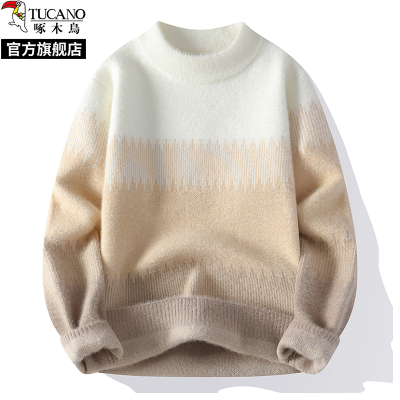 啄木鸟2024冬水貂绒一体绒半高领毛衣男士秋季新款针织打底衫线衣