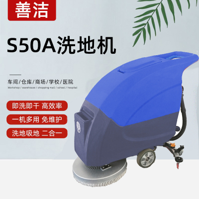 善洁手推式洗地机 S50B商用物业工厂车间工业洗地机车库拖吸一体机