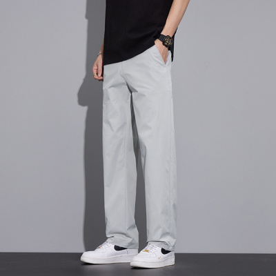 男士浅灰直筒休闲裤 冰丝垂感通勤裤 春夏透气百搭裤子休闲裤男生