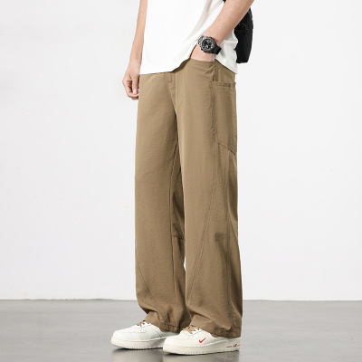 男士卡其色阔腿工装裤 大口袋机能休闲裤 春夏透气街头风裤子男士
