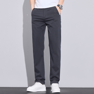 男士深灰直筒休闲裤 弹力商务通勤裤 春夏透气百搭裤子