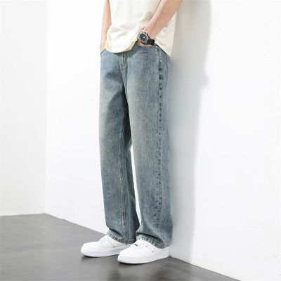 男士牛仔裤夏季新款修身时尚潮流水洗宽松复古直筒裤