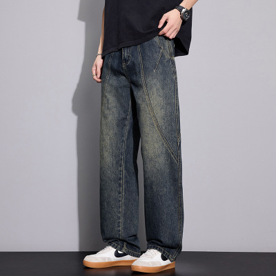 春秋复古牛仔裤 男士解构泥水洗 工厂直供宽松阔腿长裤子