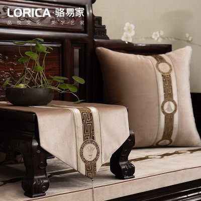 新中式桌旗客厅茶几餐桌布电视柜绣花布艺床旗定制 悦嘉禾 悦嘉禾-素雅杏 33*210cm(适用桌长1.6米-1.7米)