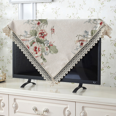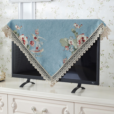 欧式电视机盖布蕾丝防尘罩套布电视帘液晶帘挂式5 语晨小花边-蓝色 110*110cm(38-47寸电视机可用)方桌也可用