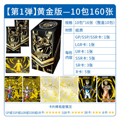 正版奥特曼卡片黄金版第4弹赛罗纪念卡整盒卡牌德凯SSPGP卡30元卡包 黄金版1弹-整盒10包