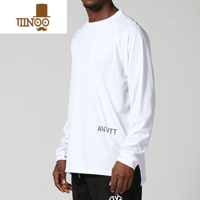 YANXU印花长袖t恤男美式运动速干透气篮球投篮服开衩宽松训练服