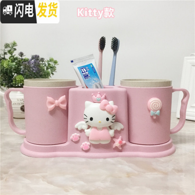 三维工匠卡通家用可爱公主双人闺蜜洗漱杯情侣套装卫浴牙刷架儿童刷牙杯 站猫款(粉)