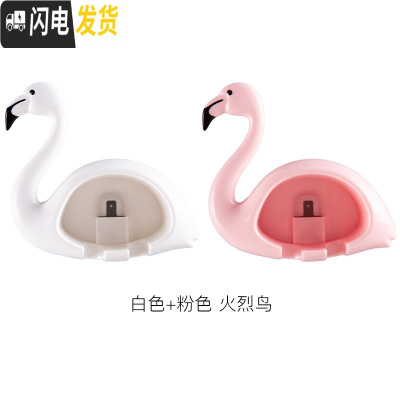 三维工匠牙刷置物架吸盘式可爱多功能牙具架免打孔卫生间吸壁式牙刷架 白色+粉色火烈鸟