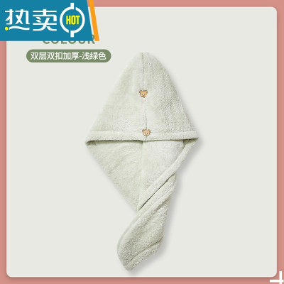 敬平干发帽女吸水速干加厚2021新款浴帽洗头包头巾器擦头发毛巾 双层双扣加厚-浅绿