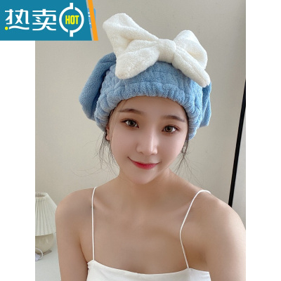 敬平干发帽吸水速干帽加厚2021新款可爱干发巾洗头发浴帽女包头巾 大蝴蝶公主帽[宝石蓝] 主图同款