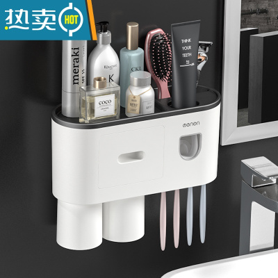 三维工匠挂牙刷架吸壁式牙刷置物架刷牙杯套装卫生间牙膏架四口之家 灰白色