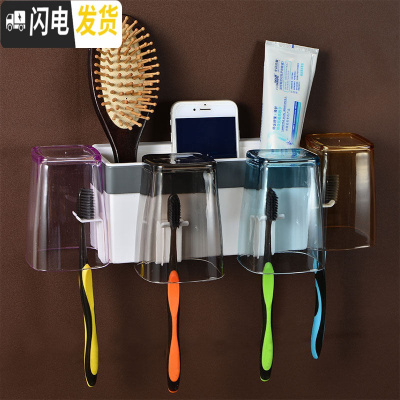 三维工匠卫生间牙刷置物架免打孔刷牙杯架子吸壁式壁挂牙刷架漱口杯套装 四杯套装
