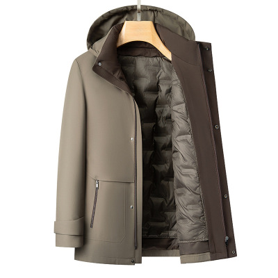 秋冬新款牛奶丝面料羽绒服商务休闲羽绒服中长款连帽男装外套中年