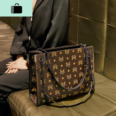 包包女包2020新款春季时尚大容量托特包女士百搭单肩包简约斜挎包NEW LAKE 咖啡色女斜挎包