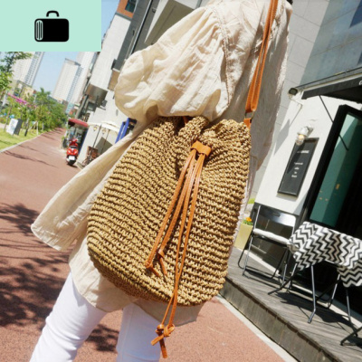 ins编包藤编包编织包沙滩海边度假水桶包包女斜挎包大容量夏季NEW LAKE女士单肩包