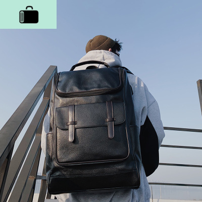 简约时尚韩版双肩包 街头潮男皮质双肩包 户外休闲背包学生书包潮NEW LAKE 黑色