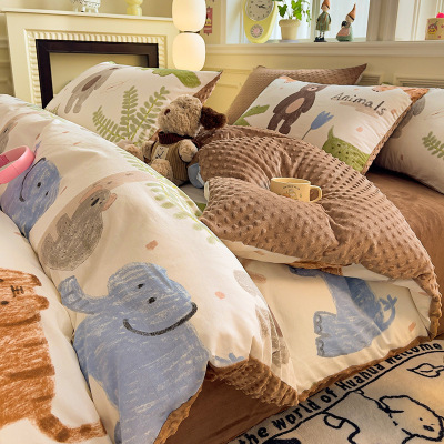 秋冬全棉豆豆绒被套单件150×200×230加厚牛奶绒床单床上四件套