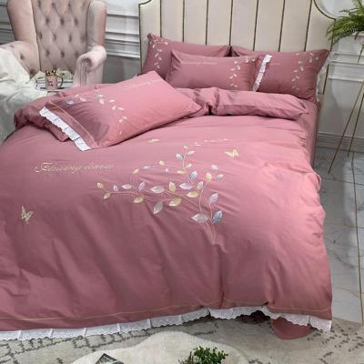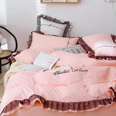 美帮汇款少女心水洗棉全棉四件套全棉床单被套床上用品公主风4