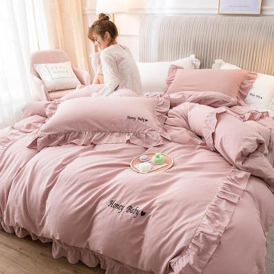 美帮汇款水洗棉四件套公主风宿舍小香风被套床单磨毛床上用品三件套