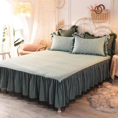美帮汇韩版蕾丝花边水洗棉床裙式四件套公主风床笠床单少女被套床上用品