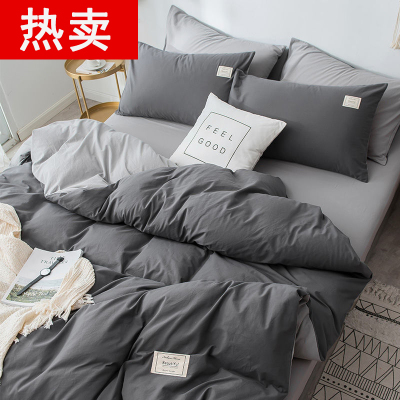 北欧风四件套水洗棉被套网红款床单学生宿舍三件套床上用品