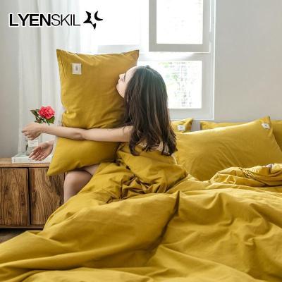美帮汇全棉水洗棉四件套北欧风床品套件全棉撞色床单被套款床上用品