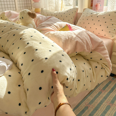 ins简约加厚牛奶绒床上四件套新款法兰珊瑚绒单被套床单宿舍套件