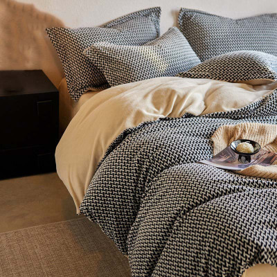 空气层色织提花水洗棉四件套纯棉床单被套简约感床上用品