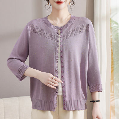 七分袖妈妈装针织上衣女时尚中老年春秋款小衫薄款春装衣服40-60