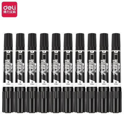 得力(deli) S555 大双头粗头多用物流记号笔签字笔 办公文具教学会议笔马克笔 10支/盒 黑色