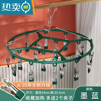 敬平不锈钢家用袜子衣架多功能晾晒衣夹挂钩圆形凉内衣架短裤夹子器 硅藻胶圆形晾晒架墨兰蒂色(20夹) 1个